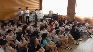 校長講話では、9月1日が「防災の日」となった1923年の「関東大震災」を紹介するとともに、災害級の猛暑となる9月上旬も引き続き、熱中症予防に取り組んでもらうようにお願いしました。
