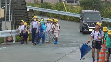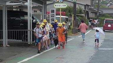 台風15号の接近に伴う、豪雨、河川増水・氾濫等が心配されましたが、少なくとも磯辺小の子どもたちにとっては、登下校ともに雨が止んでいる中で通学することができ、水不足の解消をもたらしてくれた恵みの雨になったようです。