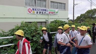 中野畳店に向かう道中には、吉津選手の世界陸上代表選出を横断幕が輝きを放っています。吉津選手が来校される10月31日(金)がとても楽しみです。どんなハロウィン当日となるでしょうか。