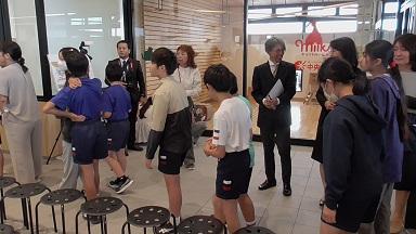 大宮那月さんがトップチームに登録されている朝日インテックラブリッジ名古屋が「なでしこリーグ1部」で優勝した報告も兼ねて、11月25日の夕方に磯辺小学校を訪問してくれました。大宮さんは、ラブリッジのU15とU18の両チームでも活躍し、それぞれの世代の全国大会にこれから出場します。U15大会は12月6日から、U18大会は1月3日から、それぞれ大阪で大会が開催されます。日本代表めざして、奮闘を続ける大宮那月選手をこれからも磯辺小のみんなで応援していきましょう!
