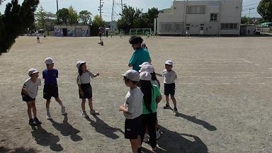 休み時間が終わり、3時間目がスタートしました。年長児さんが走り終えて、3年生の体育の様子を見てくれました。人に見られることを意識することは大切だと感じました。いつも以上にかっこいい姿を見せてくれたように感じます。最後は、一緒に屈伸や伸脚の運動をしてくれました。3年生にとっても、楽しく、よい刺激をいただきました。