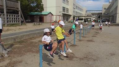 10月とともに、ずいぶん涼しくなり、休み時間の外遊びも制限なしで行うことができるようになりました。秋になって人気沸騰は、「あにごっこ」です。