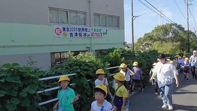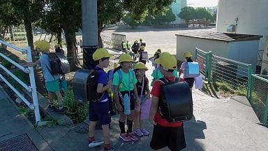 週間天気予報では、台風22号の影響が心配され、今日、明日の天気は雨どころか、悪天候となる可能性がありましたが、さすがもってる磯辺っ子、2年生の校区探検は青空のもとで行うことができました。