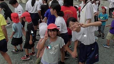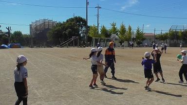 4年生も、競技種目は「台風の目」でした。どのクラスも、声をかけあったり、仲間の応援したりして、チームワークのよさが感じられました。