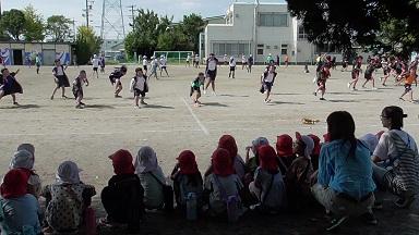 いろんな学年の子どもたちが仲間を募って鬼ごっこをします。吉津選手もこの運動場を走って、トップアスリートになったのだと思うと、この運動場を走り回っている子どもたちから、将来のトップアスリートが生まれるのではないかと期待してしまいます。