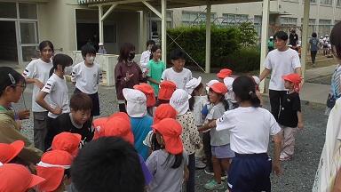 20分ほどの外遊びの時間はあっという間に過ぎてしまいました。年長児に「とても楽しかった」と感想を聞き、6年生の子どもたちもとてもうれしそうでした。楽しい時間を一緒に過ごしてくれてありがとうございました。