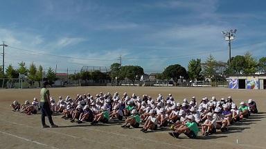 コロナ感染症や熱中症予防が必須と以降、体育館で全校児童が集まることはあっても、運動場に集まることは一斉下校ぐらいしかなかなかないので、体育発表会の全校種目でみんなが集まれることを本当にうれしく思っています。