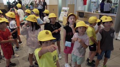今日も2チームに分かれて、お話を聞いたり、バックヤードを見たりしました。やっぱり2年生ともなると聞く態度もよいですし、質問内容も濃いものです。小学校での1年の成長の差は大きいと、2年生の立派な姿を見て感じました。もちろん1年生も1年生らしく元気で素敵でした。