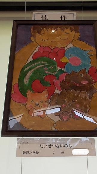 今年度の動物愛護ポスター展にはなんと3名もの磯辺小の子どもたちが入選してくれました。逆光ですみませんでした。昨日は、こんなにきれいに作品を写すことができました。