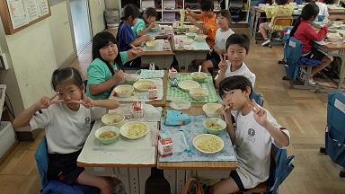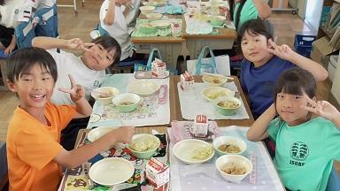 2時間目終了のチャイムが鳴り、「ランチャレ」参加児童がどんどん集まってきました。今日もにぎやかに、楽しくランランできそうです。
