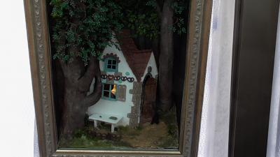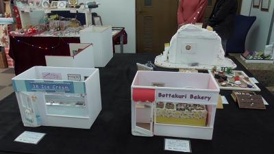 なんでもポケットなどでお世話になっているボランティアさんから紹介いただいた「第24回ミニチュアのクリスマス展」に行ってきました。会場には、ミニチュア教室に通う生徒のみなさんの作品も展示されていました。このアイスクリーム屋さんとパン屋さんもすごく上手にできているとともに、さらにお店の名前もシャレててセンスがあると感心しました。