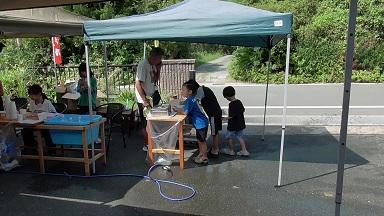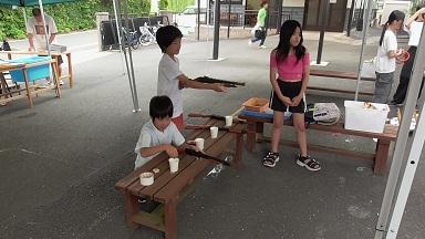 今日も13名の4~6年生のボランティアが集まり、たけのこの準備を進めてくれました。まずはゲームの試し打ちと係決めを行います。
