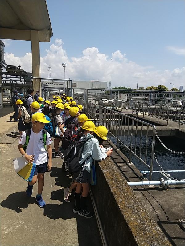 3つの沈殿池をまわりました。だんだんにおいがしなくなり、微生物の力を実感しました。これから視聴覚センターに向かいます。