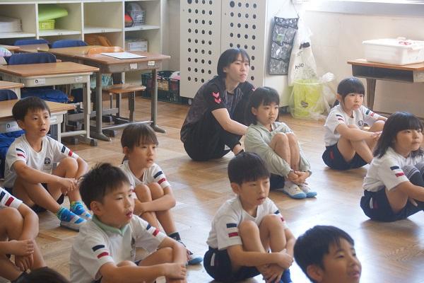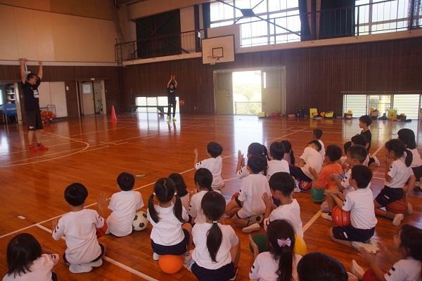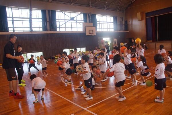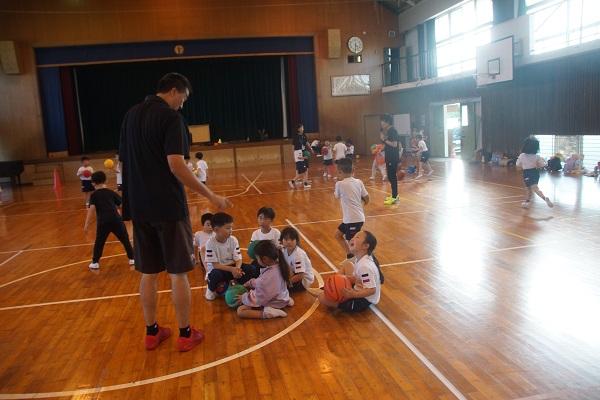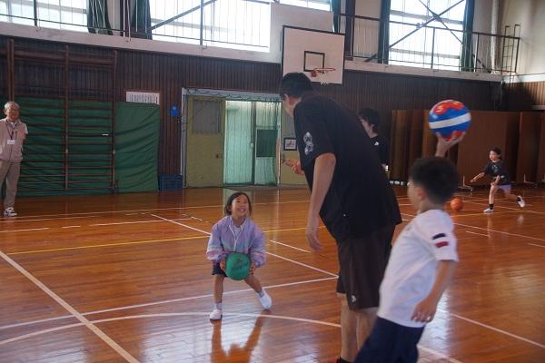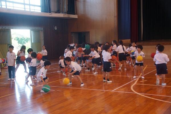 Bリーグの中地区で優勝を果たし、この日曜日に優勝パレードを終えたばかりの「三遠ネオフェニックス」から鹿毛さんを講師にお招きし、のびるんdeスクールの1,2年生は、バスケットの楽しさを味わいました。私が体育館を訪れたときには、ドリブルをしながらじゃんけんを行い、鹿毛さんが待つゴールをめざすゲームを行っていました。このタイミングで、鹿毛さんからバスケを習うことができる磯辺っ子は幸運だと思いました。このたのしい経験をきっかけに、スポーツや運動を楽しむことにより一層興味をいだいてくれればと願っています。