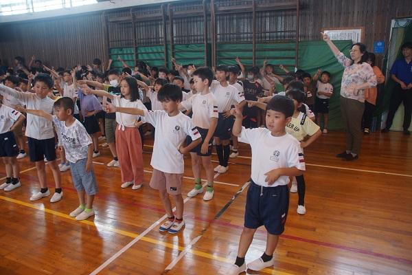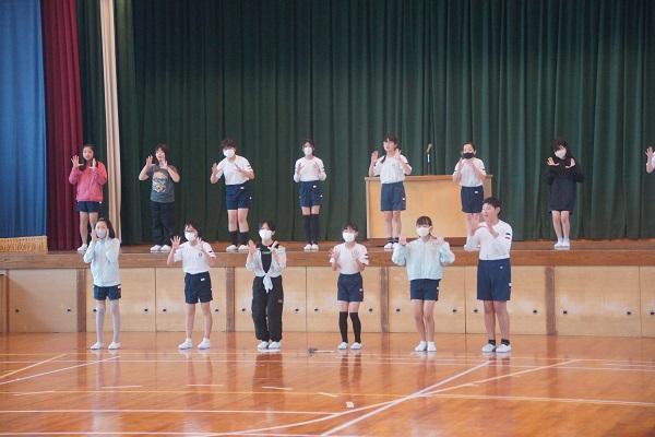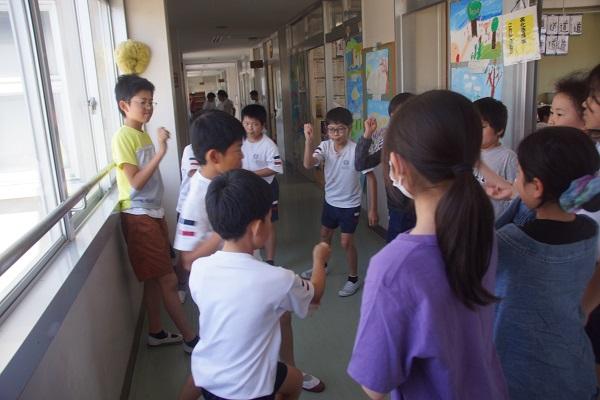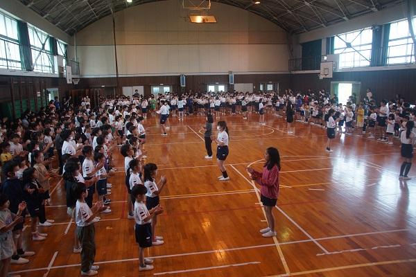 「児童集会」は、歌声委員会による企画で、「歌声集会」を行いました。6月の曲「パレード」の振り付けをを紹介したあとで、振りをつけて楽しく歌いました。みんなで夢に向かって歩いているような気分になる、すてきな振り付けでした。明日からの朝の会での「パレード」の歌声がとても楽しみです。