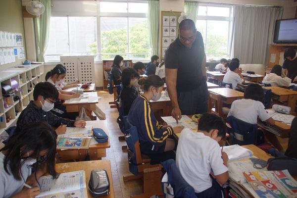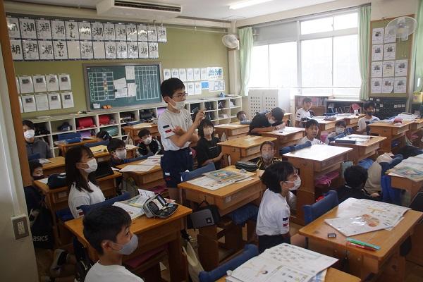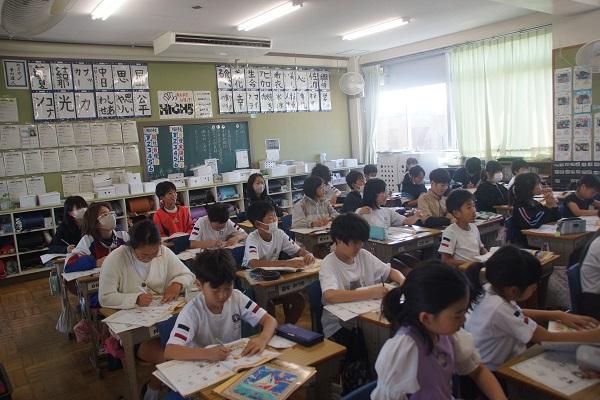 3年生の外国語活動の授業も楽しそうに、でも、話される英語は流ちょうです。書き順は、How many strokes?っていうのですね。すごいぞ、磯辺っ子!