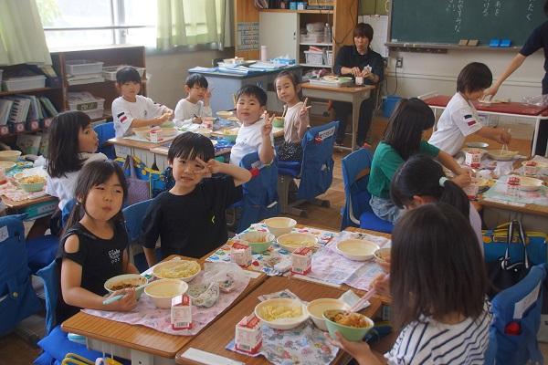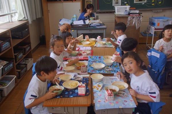 1年生にとって、初めてのジャージャーめんとなりました。袋から取り出しためんが、うまくほぐれなかったようですが、「おいしい」と言いながら、食べてくれていました。給食にも慣れ、、どんなメニューでも上手に対応していく姿に、大きな成長を感じます、