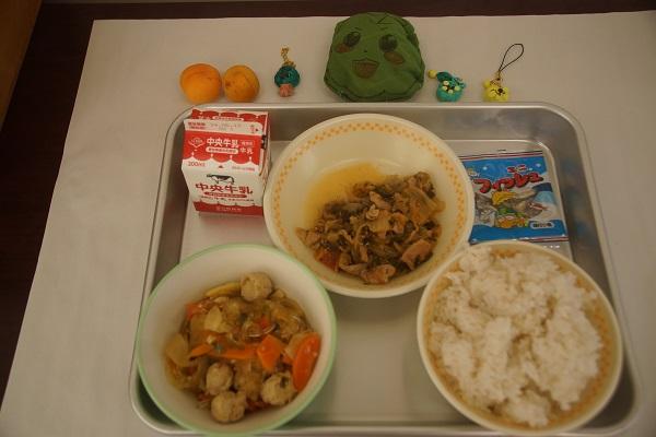 今日のメニューは、豚キムチ、肉団子のスープ煮、麦ごはん、牛乳です。落語の「寿限無」ではないけれど、今日の豚キムチは、「青じそとトマトの豊橋産豚キムチ」が正式名です。ここまで長いならば徹底して、「豊橋産青じそと愛知産トマトの豊橋産豚キムチ」にしてしまえばよいのにと思ったりします。味は、青じそとキムチがよくあって、とってもおいしかったです。ちょっと大人の味かと思ったので、6年生のクラスを訪れたところ、予想通り6年生にはとっても好評でした。