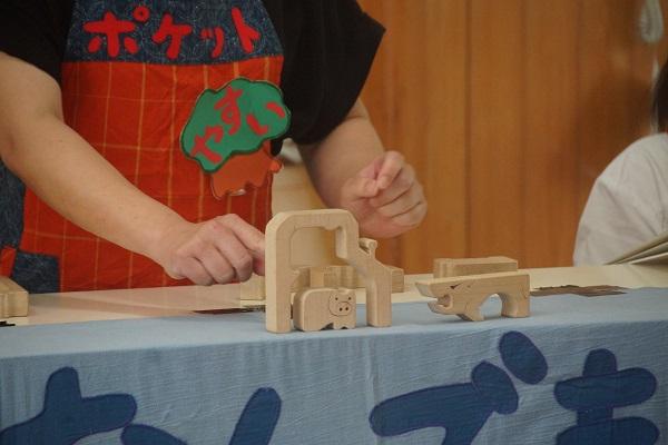 6 童話(木組み) 「三匹のこぶた」(よく知られたストーリーと一部異なりました。)