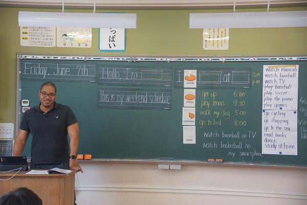 6年生の英語の授業のテーマは、This is my weekend schedule.です。板書を見ても、実用的ではあるけれど、難易度は高いかと思っています。しかしながら、会話練習では、流ちょうな英語を話しているので驚いています。身ぶり、手ぶりもナチュラルです。