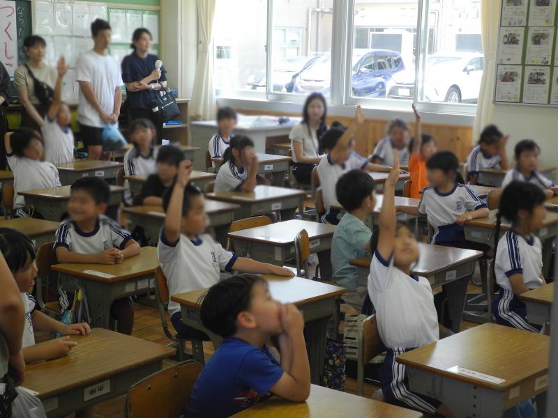 今年も4年生理科の出前授業として、元校長先生に「空気のふしぎ」について実験ショーをお願いしました。