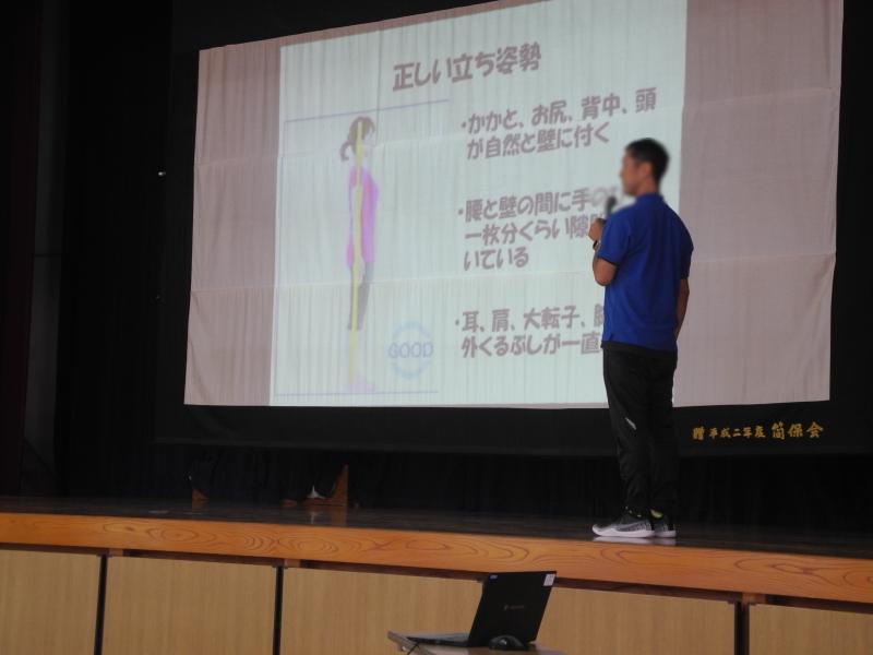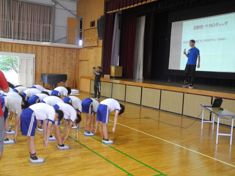 「校長先生がけがをしたのはアキレス腱だよ。みんな自分のアキレス腱触ってみな」というと