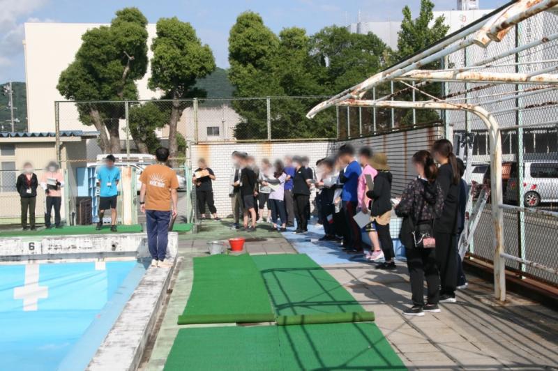 資源回収はプール前駐車場で行っております。