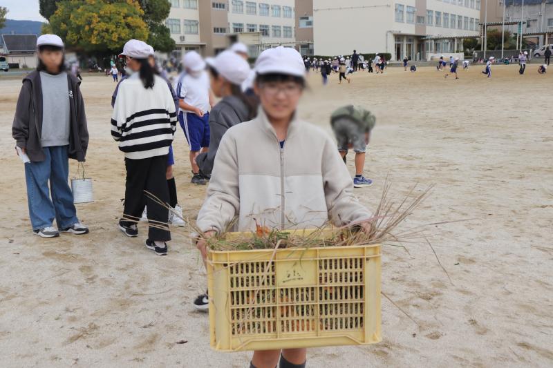 気持ちの良い岩西小学校でお迎えしたい・・・と一生けんめいゴミや落ち葉を集めていました。