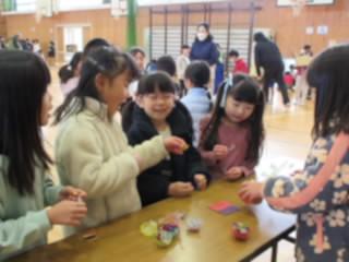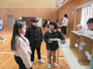 2年生は、「楽しいですよ!」「来てください!」と呼びかけたり、お兄さん、お姉さんらしく「がんばれ!」「おしい!」と1年生を励ましたりしていました。1年生は、夢中になって遊び「楽しかった!」と笑顔いっぱいでした。2年生も、自分たちが作ったおもちゃで楽しんでもらえる喜びを感じ、とても満足そうでした。待ちに待った「おもちゃまつり」は大成功でした。