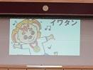 5,6年生の給食委員の児童が、岩田小マスコットキャラクターいわタンを登場させて,給食にまつわるクイズを作って発表しました。