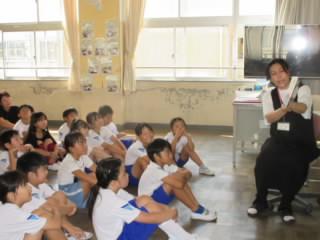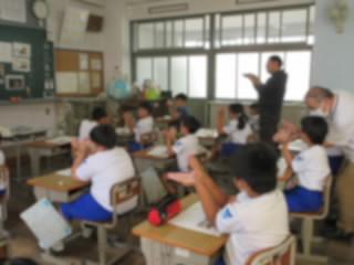 オルポジ学習で多文化共生を学んでいる4年生。岩田団地自治会長の阿部準治さんをお招きしてお話を聞きました。