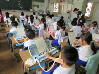 9月22日 1年生音楽 鍵盤ハーモニカで「こいぬのマーチ」