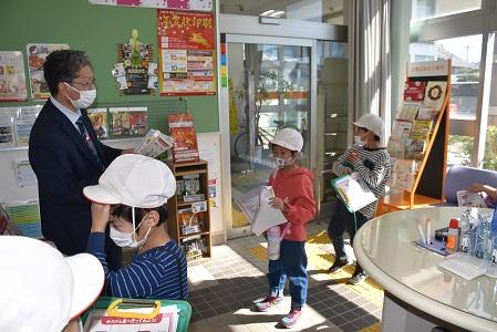 入学間もない1年生のために、2年生が学校の案内をしました。