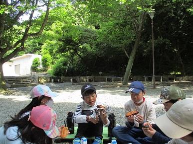 たてわり班で遊んだ後、焼き芋を食べました。より一層おいしく感じたようです。