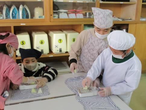 昼からのもちもち集会のために、2年生が大根おろし作りに挑戦しました。