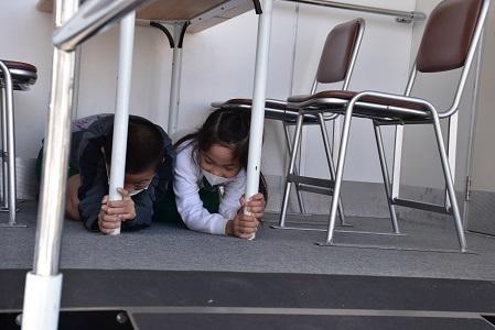 防災危機管理課の方にお越しいただき、防災について全学年で学びました。起震車体験、煙体験、消火訓練体験なども行いました。