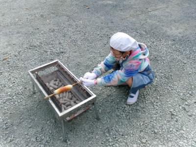 子どもたちは、全体にまんべんなく火が通るように、気をつけながらくるくるとちくわを回していました。