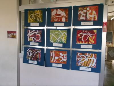 5年生は、図工の木版画の単元で、自分の名前をデザイン化して彫り、カラーで印刷しました。