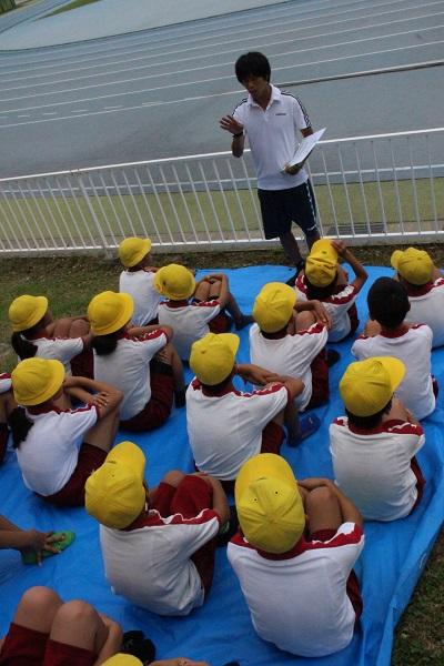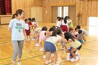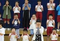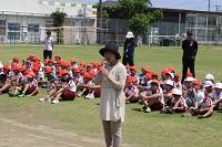 午前10時30分。気温30℃。芝刈りが済んだ緑美しい運動場で元気に遊ぶことができました。