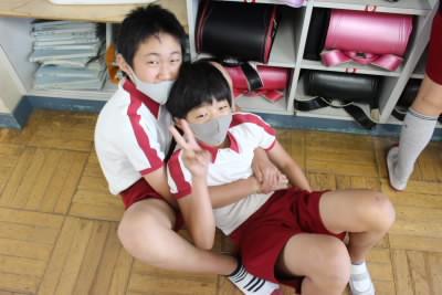 9月から続いていた南校舎の工事が一部終了し、足場が一部分取り外されました。「校舎がきれいになった」「中学校と同じ色だ」「時計が見えるようになった」など、20分放課や体育の授業の様子を見に行くと、子どもたちも新しく塗り替えられた校舎を見てうれしそうでした。澄み切った青空に、新しい校舎の外壁がきれいに映えます。
