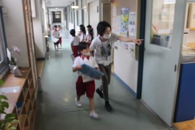 今日から『かけ足訓練』が始まりました。全校で小学校のグラウンドを走ります。準備体操をした後、集団走と個人走となります。個人走は初日の今日は2分間でしたが、明日からは6分間になります。どの子も真剣に取り組み、走終わった子どもたちの顔はどの顔も清々しく感じました。