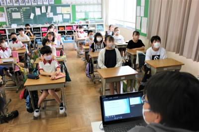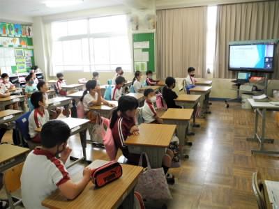 朝の時間にリモートによる『プール開き』を行い、早速、スタディ組、1年生、6年生がプールに入りました。3年ぶりのプールということで、1年生がはじめてなのはもちろんのこと、6年生にとってもはじめての「大プール」になります。最初は緊張している様子でしたが、どの学年もとても楽しそうに活動しました。「すごく楽しかった!」「明日もプールはあるのかな?」水泳の授業を楽しみにしている子どもたちの声が印象的でした。