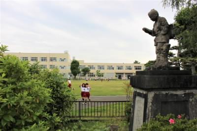 夜に降った雨も上がり、登校時も傘が必要なくホッとしました。グラウンドから楽しそうな声が聞こえてくるので、出てみると。1年生が、サツマイモの苗を植えていました。「サツマイモパーティーができるといいな」収穫を楽しみに、みんなで協力して活動していました。そして20分放課、朝礼台の上には「黄色いコーン」が置かれています。校舎から「黄色だ、きいろだ!」の声が聞こえ、次から次へと子どもたちが、グラウンドへ飛び出してきました。赤色は「使用禁止!」黄色は「注意して遊ぶ!」なのです。子どもたちは、虫を捕まえたり、ボールで遊んだり、存分に楽しめたようです。手洗いの音楽が流れると急いで校舎にもどり、あっという間に静かになりました。
