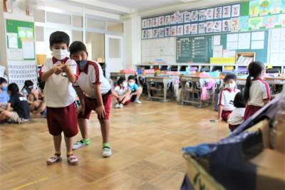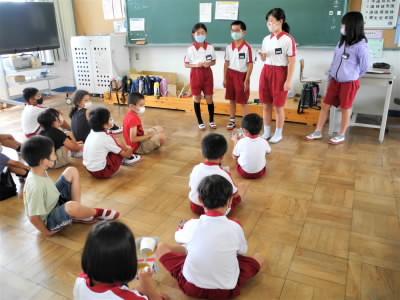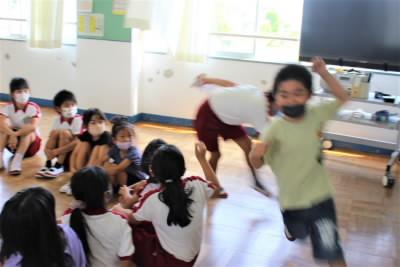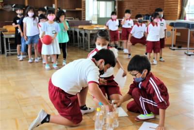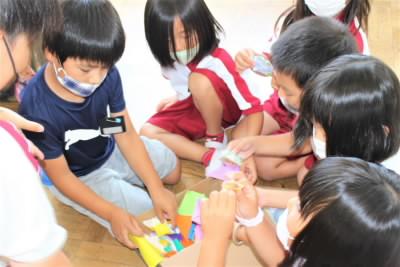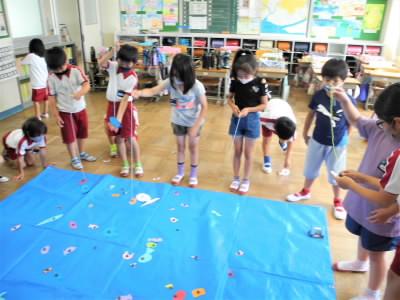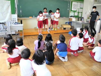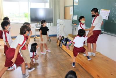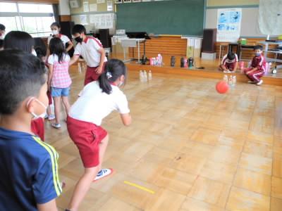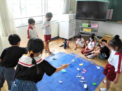 『ホワイトプラン』は、4年生が中心になって「楽しい遊び」を企画、準備、運営することで、社会性やリーダー性を伸ばすことをねらいとして実施します。4年生のみんなは「射的」や「魚釣り」「ボウリング」など、この日のために時間をかけて準備してきた遊びと、「ジャンケン列車」や「だるまさんが転んだ」など、簡単にできてみんなで楽しめる遊びをおり交ぜて、1~3年生を飽きさせないように工夫して取り組みました。4年生が献身的に活動する「素敵な姿」と、参加した1年生から4年生みんなの笑顔をたくさん見ることができ、『ホワイトプラン』は大成功でした。