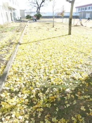 校庭にあるイチョウの木の葉が黄色く色づいています。