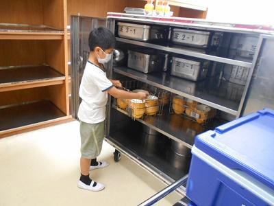 給食従業員の岡田さんが「給食委員会の子はよく働いてくれて、助かります」と誉めてくれました。