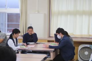 今回は中学校家庭科室に小中学校職員が集まり、支援が