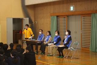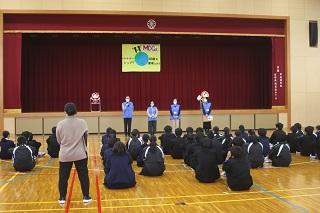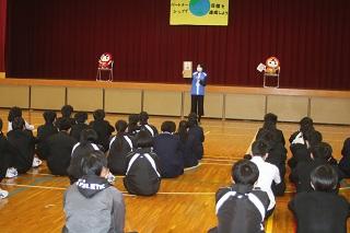 12月10日は世界人権デーということで,前芝中学校では人権擁護委員さんたちをお招きし全校生徒でお話を聞きました。今回はたくさんあるテーマの中から,生徒にとって最も身近である「いじめ」についてのお話でした。