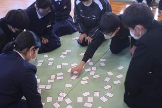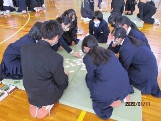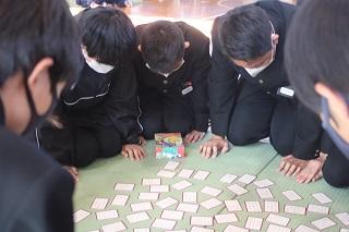 全校生徒で百人一首大会を行いました。1978年から始まった伝統行事で,今年は44回目になりました。