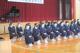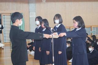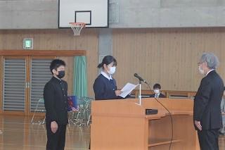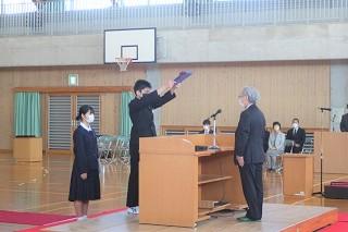 本日は令和4年度の修了式でした。1・2年生の代表生徒が校長から修了証書を授与されました。